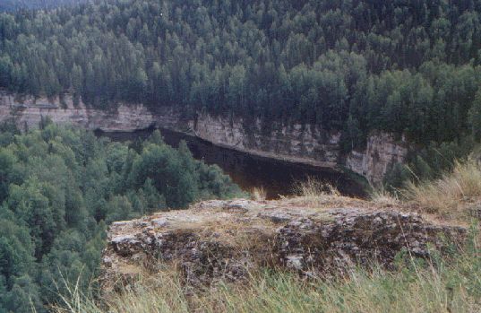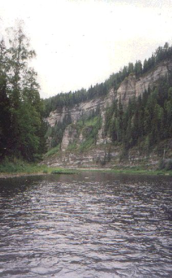 Наконец, все собрано, уложено и одето. «Нас ждет река»,- как писали в героических статьях журнала «Турист» и «Ветер Странствий». А река действительно ждет. Сразу же за поворотом - длинный мелкий перекат, при том, что течение быстрое. Все вылазят за борт, дабы протащить несплавной участок. Кто бы знал, что таким образом придется «сплавлятся» не один километр. Но тут появляется еще один сюрприз - вода в реке совершенно ледяная. Таким образом, сплав начинает превращатся в игру «бурлаки на Усьве». Самым хитрым и изворотливым удается проплыть на байдарке подольше, но все-равно результат один ... Нам сильно повезло - байдарки были проклеены толстой (до 3-4 мм) леей, одновременно похожей на пожарный шланг и на линолиум. К исходу второго дня в некоторых местах даже этот протектор стал протираться... Полуобливные камни в силу какой-то детской шалости окрестили «Грузинами» (здесь нет никакой национальной подоплеки - детям просто пришелся к месту какой-то анекдот). Над рекой слышна тягучая бурлацкая песня: