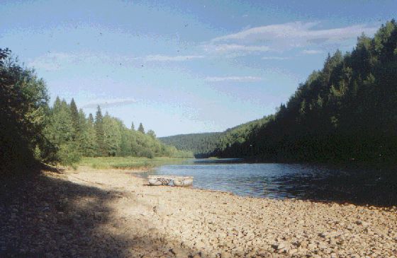 Вскоре пороги заканчиваются, идти становится легче... Правда, временами попадаются выходы специфических пород, засыпающих реку острыми камнями. На одном участке произошел очень интересный эпизод. Байдарка выворачивает за поворот и ее экипаж видит странный предмет, быстро приближающийся к ним по реке. Этим странным предметом является машина «Урал»... Дорог в районе практически нет, вот поэтому летом русла таких мелководных рек - как нельзя более подходят для передвижения автотранспорта...