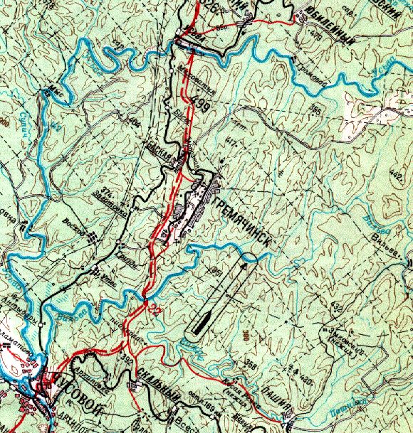 Как я уже отметил - при среднем уровне воды пороги сложности не представляют - струя недостаточно сильна. Однако в паводок, когда воды много, как вторая часть, так и последняя становятся намного сложнее. В то время над порогом были натянута проволока - на нее весной вешают ворота для проведения спортивных соревнований. От порога недалеко до ж/д моста. За мостом на левом берегу - обширная поляна, где, судя по всему и располагаются участники соревнований. Здесь особенно чувствуется нехватка дров, которые приходится возить с другого, крутого берега.