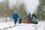 14.45 – 15.30 - довольно долго тусуемся в пос. Октябрьский. Отчаянно косим под парней, но что-то нас выдает. К этому времени один мамонт вымер (замерз и устал) и решает сойти с маршрута и уехать домой. Благодаря существованию дружбы у Гузели и Регины, они обе нас покидают. Мы их сажаем на проезжающее авто. По причине замерзания и приближающейся ночи мы со скоростью рвемся дальше в ночь и в глухой лес, оставляя за собой теплую и уютную цивилизацию в погоне за мозолями, холодом, голодом, усталостью, но на встречу с нашими туристами, с мужской силой и уверенностью.