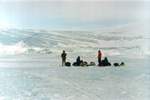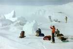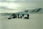 ...На пятый день пути вдали на горизонте появились очертания островов и домов на наклонном берегу. При подходе к бухте Солнечной попали в зону сильнейшего торошения. Огромные валы торосов следовали друг за другом. Уже отчетливо видны домики геологической базы. Но приближались к ним мы очень медленно. Торосы оказались очень сложными. Примерно в километре от берега попали в очень тяжелый участок. Пришлось проходить через них в два приема, сначала оттащили до берега санки, а потом вернулись за рюкзаками. В дальнейшем такие участки мы проходили сходу, но в начале маршрута нам показалось, что это невозможно.