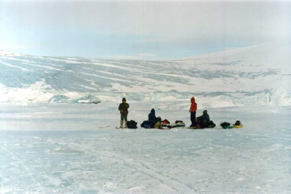 | После спуска в фиорд Спартака (на заднем плане - ледовая перемычка) |