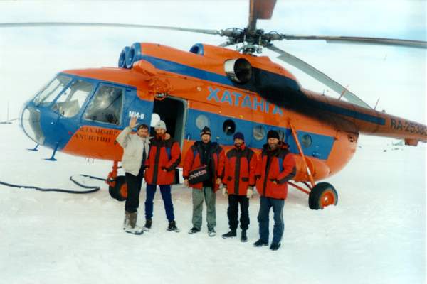 Еще с одним «земляком» мы встретились в день вылета на мыс Челюскина. Этим «земляком» оказался вертолет МИ-8. Правда, об этом мы узнали из разговора с летчиками уже при подлете к самой северной точке Евразийского континента. Мы были приятно удивлены, узнав, что, это вертолет казанского производства. Оказалось, что летчики часто бывают в Казани на ремонте вертолетов. На всякий случай обменялись адресами.