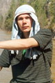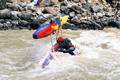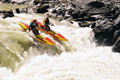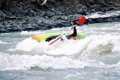 Так вот, нас, как выяснилось, привезли на плотину - это километра на три выше старта (ну ни чего, будет время для разминки). Наши спортсмены начали готовить суда, а Рита и я взяли фотоаппарат и камеру и пошли пешком вдоль реки. От плотины до старта надо было карабкаться в гору, но на старт мы пришли вместе с первыми каякерами, приплывшими от плотины. Посмотрев на них немного, мы пошли дальше. Примерно минут через сорок нас обогнал первый каякер. Где-то после порога «Пирамида» мы увидели нашу двойку - Костю и Тимура. Поснимали их немного. Пошли дальше. На пороге «Гарнитур», возле финиша, стали ждать нашу четверку. Через некоторое время выяснилось, что они уже прошли. Вскарабкавшись на дорогу, мы пошли на финиш. По пути нас догнал мужчина. Разговорившись с нами, он сказал, что мы прошли сегодня 20 км. Еще он нам сказал, что вторую часть Мажоя с этого берега увидеть трудно, ее надо смотреть с другого берега, переправившись на судейском катамаране выше порога «Малыш». Нам сразу лень стало идти, и на финише мы попросили нас довести соседей по базовому лагерю. Они согласились.