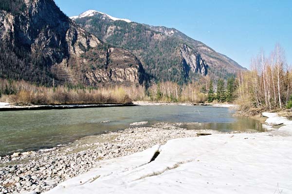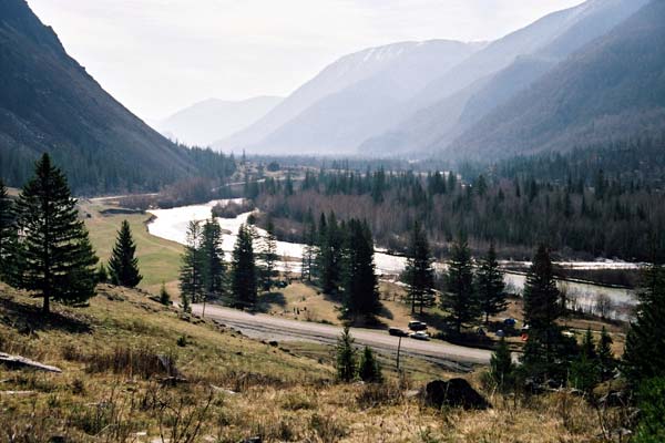 Все такие сытые и довольные, рассевшись по своим «газелям» (две группы - в первую машину, а наша группа почти со всеми вещами - во вторую), предвкушали спокойную дорогу по Чуйскому тракту, но примерно часа через два пути «Газель», в которой ехала наша группа, подрезал какой-то «газон» и, прыгая по ухабам, унесся в лес. Наша «газель» от такого неожиданного поворота событий едва не совершила оверкиль в кювет, и устояла только благодаря мастерству нашего водителя. Далее нашу группу ожидало еще одно непредвиденное обстоятельство - пешее восхождение на Семинский перевал, так как наша «Газель» отказывалась ехать в горку. Сначала мы ждали, когда мотор остынет, периодически вспоминая первую «газель» и надеясь, что они обнаружат наше долгое отсутствие, но потом нам это надоело и мы пошли наверх пешком, а машина с вещами понемногу ехала сама. Немного не доходя до вершины перевала, за нами пришла первая «Газель». Взобравшись на перевал, полюбовались на красоты, сели в машины и поехали дальше. На спуске мотор начал остывать, а салон микроавтобуса заполнился запахом паленых тормозов. Вскоре, близ поселка Онгудай на речке Урсул, выгрузилась группа Ляшко, мы перераспределили вес между машинами и отправились дальше. Надо сказать, что наш водитель решил дальше ехать так: раз машина в горку забирается плохо, то он решил забираться на горку съезжая с предыдущей горки на большой скорости, почти не притормаживая на горных поворотах (таким образом, мы на одном из подъемов обогнали другую «Газель» и поехали дальше первыми).