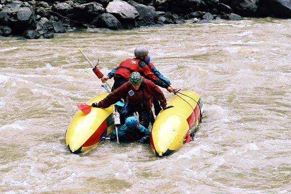 Примерно часам к двум, после сборки судов, пошли смотреть квалификацию на порог «Малыш». В этих соревнованиях у нас выступали Голубев Филипп, Зверев Александр, Минзянов Рамиль, Пантелеев Виталий (катамаран четверка), Абсалямов Тимур и Платов Константин (катамаран двойка). После квалификации мы сами пошли на порог. Первой шла четверка с экипажем: Голубев Филипп, Бахтин Евгений, Мухутдинов Тимур и Кадырова Миляуша. Второй шла двойка - Малыгин Владимир и Ворожейкин Василий. В таком порядке и на взаимной страховке мы успешно прошли остаток каскада и сплавились до базового лагеря. Вечером, за тарелкой вкусного плова, мы все долго делились впечатлениями. Для большинства из нас это был первый (пусть и короткий) сплав по пятерочным участкам реки.