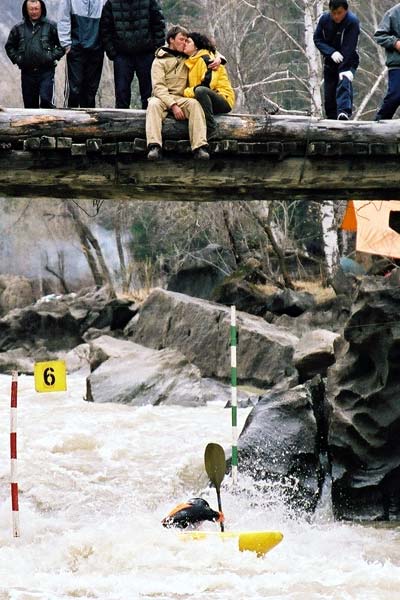 Вообще, соревнования состояли из двух этапов и проходили в режиме длинной гонки. Первый этап (~8 км) - это верхняя часть Мажоя от моста, где в Чую впадает речка Мажой (примерно пятая категория сложности), до моста перед порогом Президиум (этот порог обносился). Второй этап (~4 км) начинался после пор. Президиум и заканчивался в базовом лагере (шестая категория сложности).