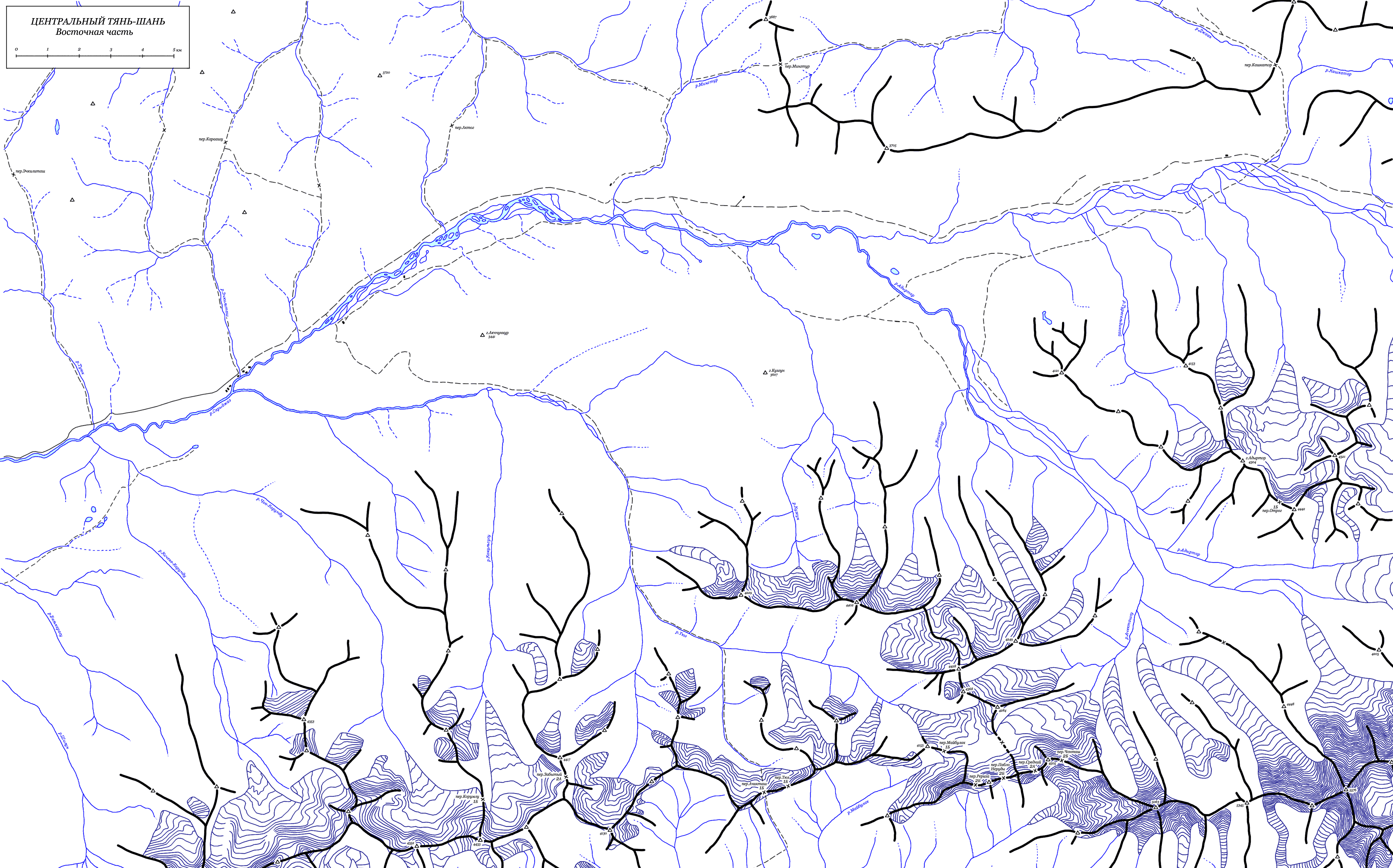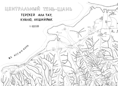 | Здесь приведена карта хребтов Терскей-Алатау, Куюлю и Акшийрак Центрального Тянь-Шаня. Выверка карты не проводилась, так что возможно расхождение с реальным положением. (Последние изменения 28.02.2005). | ||||||||||