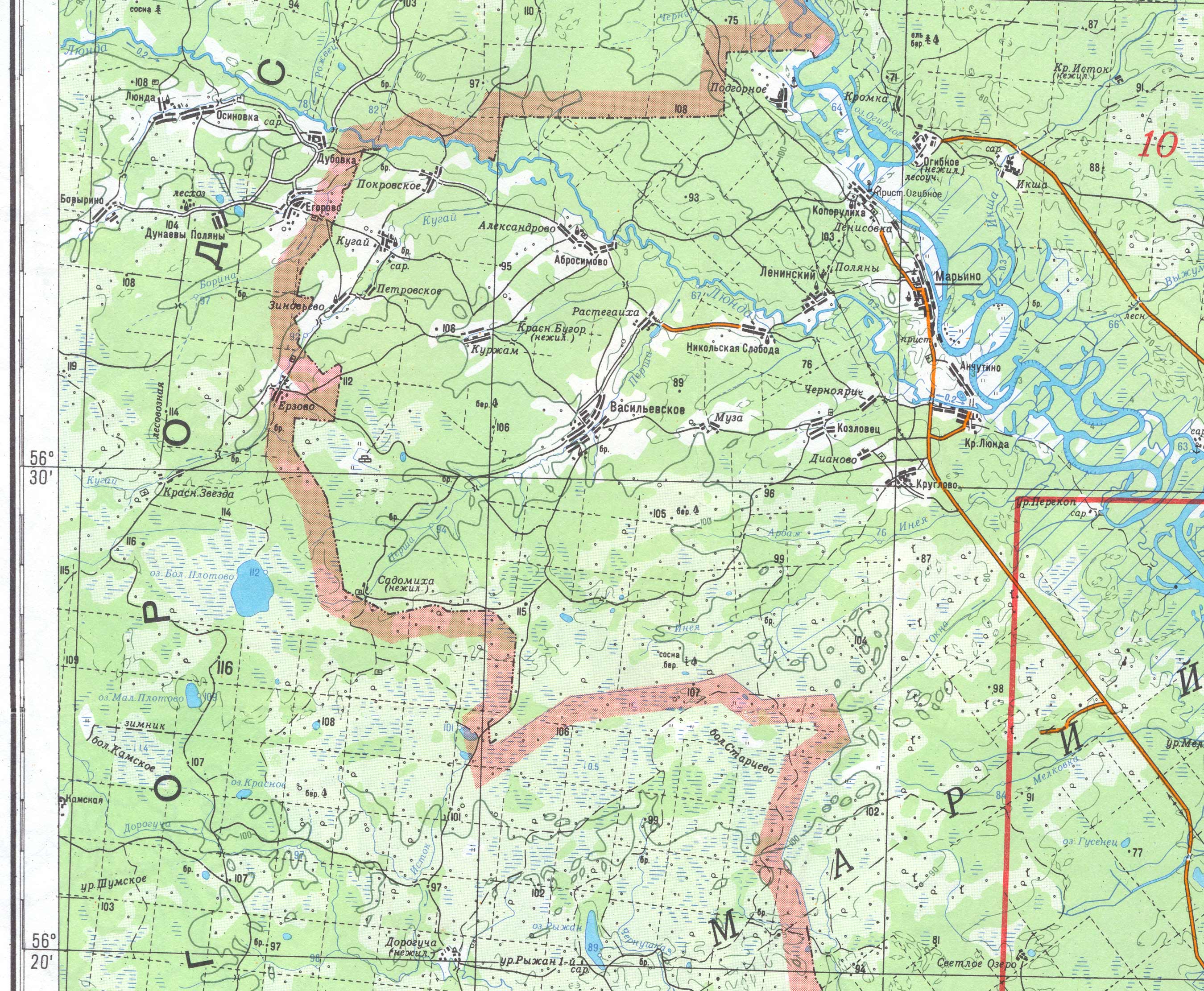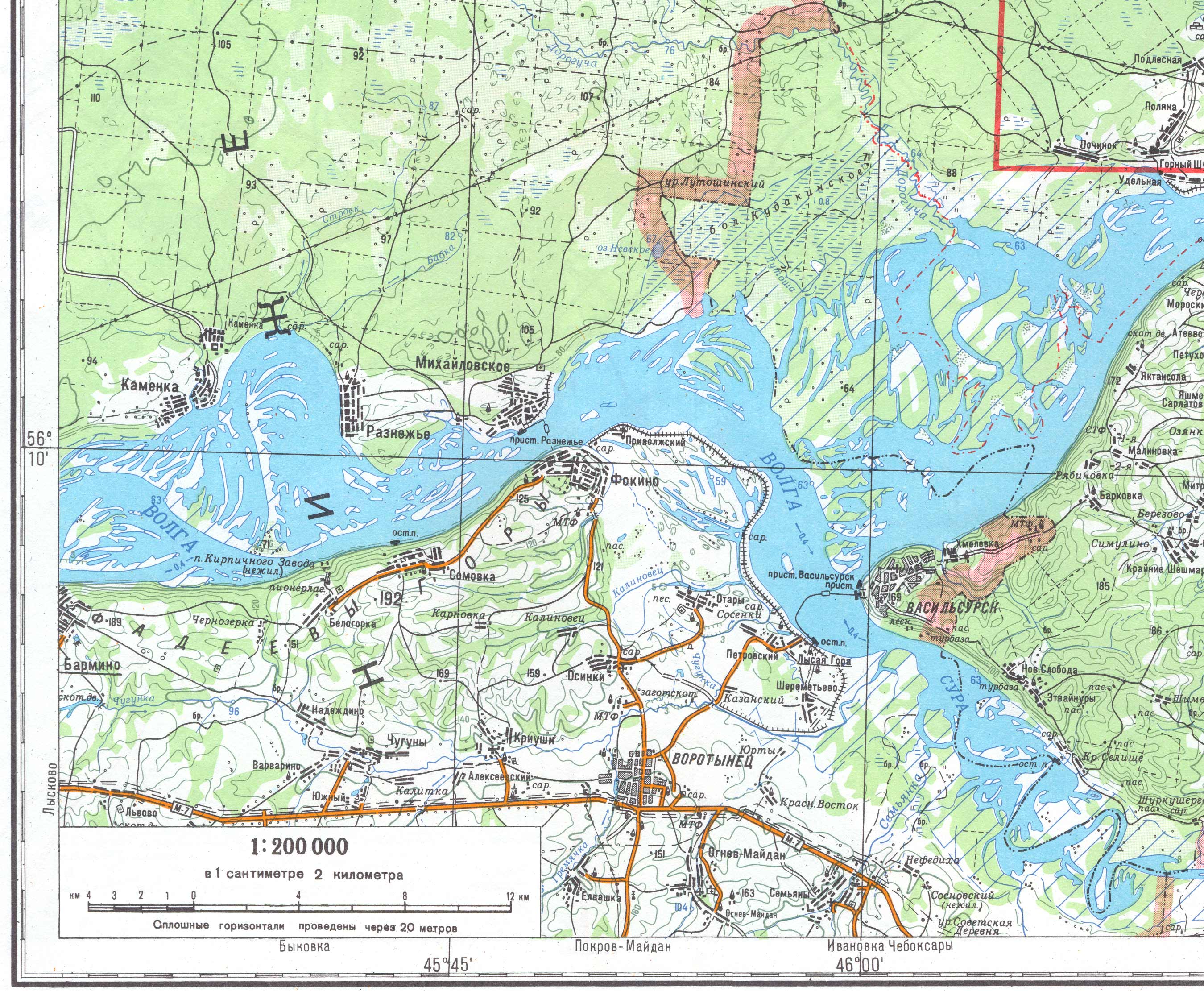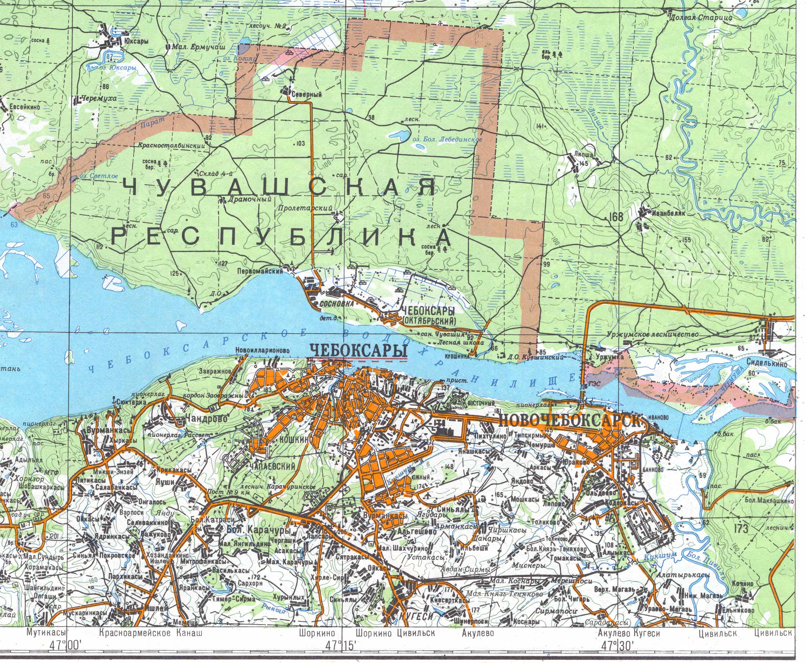 | Здесь приведена западная часть географической карты Марий Эл масштаба 1:200000. (Последние изменения 16.04.2005). | ||||||||||