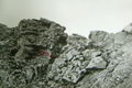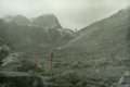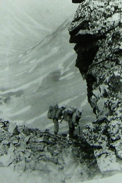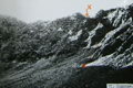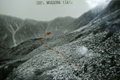 Идем в сплошном тумане. Видимость до 150 м. Мелкий дождь. Несколько часов мы просидели в ожидании просветления, но так и не дождавшись его, ушли без фотографий пути спуска.