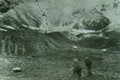От лагеря, находящегося на крутом левом берегу притоки, предпринимаем разведку предстоящего перевала.