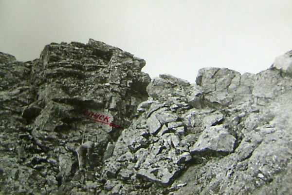 В самое верховье подходим руслом р. Апсат. Поднимаемся на крутую морену, за которой большое озеро. Есть хорошие места для ночлега. Дров нет. Озеро наполовину закрыто льдом. Справа (по ходу) от озера в хребте перемычка пер. Кот (1А), а выше за озером просматривается весь путь подъема на перевал до самой седловины (фото 75). Озеро обходим справа по крупноблочным скользким камням, покрытым мхом и лишайником. Подъем руслом ручья по пологим плитообразным площадкам (фото 76), перевальный взлет в основном по снежнику. Перемычка перевала каменистая, широкая, но везде отвесные обрывы в сторону спуска. В туре записка группы Белсовета по туризму и экскурсиям под руководством Ковальчука В.Н. от 27.07.81г. Маршрутная книжка 70-П-8. Здесь записка тоже пролежала три года (фото 77). Мы за историю перевала были на нем третьими. Он считается поистине "белорусским", т.к. на нем были туристы только из Белоруссии. Впервые был пройден туристами лыжниками из Минска под руководством Хасдана Л.С. в 1979 году.