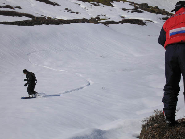 22 мая 2006 года с помощью местной авиакомпании "Альфа" на вертолете Bell-212 команда перелетала через залив Диско на северо-восточную часть практически необитаемого острова Диско (там существуют лишь две инуитские деревни на юге острова). Это где-то 60 км от Илулиссата. На острове есть горный массив с высотами 1200-1800 метров, выходящий отрогами на берег залива Диско. С этих гор фрирайдеры Татарстана осуществили два спуска. Местами по трассе уклон составлял 70-80 градусов, из-под снега во многих местах торчали камни и скальные выходы. Поэтому спуски были достаточно напряженными. Тем более что предварительная разведка маршрутов не была проведена, т.е. спускались фрирайдеры практически вслепую.