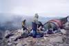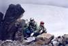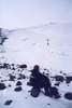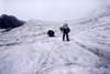 Г. Цаст-Ула (2А, 4208,4), первопрохождение Подъем: С седловины, разделяющей д.р. Дэуслан-Гол и д.р. Ямат-Гол поднимаемся траверсом по средней осыпи крутизной 30° по направлению С-З к пологой средней части ледника, стекающего с г. 4089 и через 40 мин выходим на лед. Далее по льду крутизной 25-30°, на самом верху до 50°, выходим на пологую часть купола г. 4089 и спускаемся 100 м на узкую скально-ледовую перемычку, соединяющую г. Цаст-Ула и г. 4089. В связках траверсируем ледовый гребень. Ширина гребня колеблется от 0,5 до 10 м, есть место для палатки. Перед выходом с гребня на купол вершины Цаст-Ула - жандарм, который обходим справа по льду крутизной до 50°. После жандарма выходим на купол предвершины и далее по пологому льду на вершину. Какие-либо знаки на вершине отсутствуют (ЧХВ - 3 ч). Спуск: В условиях недостаточной видимости нам не удалось найти спуск по С-З склону, поэтому мы обошли вершинный купол по северной кромке до С-В гребня, спустились по гребню до седловины и далее вниз на С до пологой части ледника. Спуск до седловины несложен и проходит по закрытому леднику в связках с одновременной страховкой. Спуск с седловины на пологий ледник проходит по ледовому склону крутизной 40°, покрытому тонким слоем свежего снега в связках с попеременной страховкой. Протяженность склона 200м. Время спуска 1ч 20 мин. Далее идем по пологим ледовым полям в направлении С-З и выходим на морену у начала каньона р. Эрегтийн-Гол (ЧХВ - 2ч 35 мин). Время прохождения: 5 ч 35 мин. 30 августа